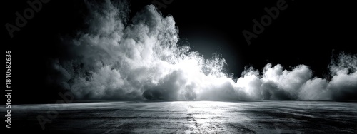 © Максим Зайков, Fototapeta premium dark smoke background black fog floor night light abstract halloween mist horror cloud. texture dark smoke background effect steam stage concrete podium scary product mystery scene spooky backdrop