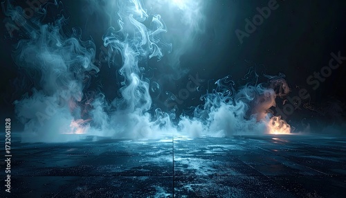 © Yaga, Obraz premium Dark, smoky, illuminated floor