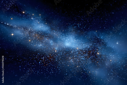 © Daniel, Fototapeta premium Dark space background with stars and galaxy in blue night sky, night, stellar