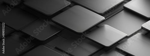 Fototapeta premium Dark squares abstract 3d black background. abstract 3d texture black square pattern background, grunge surface. Black color square pattern on banner with shadow.