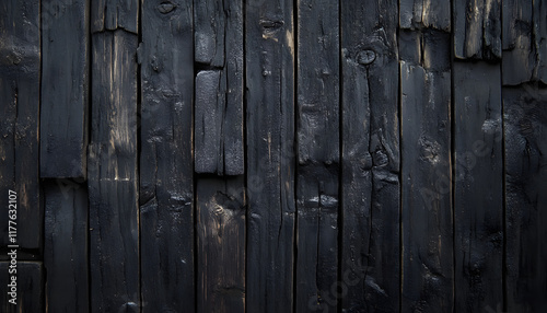 Fototapeta premium Dark stained wooden planks create a textured wall
