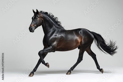 © NeuralNiche, Obraz premium Dark stallion against a dark background