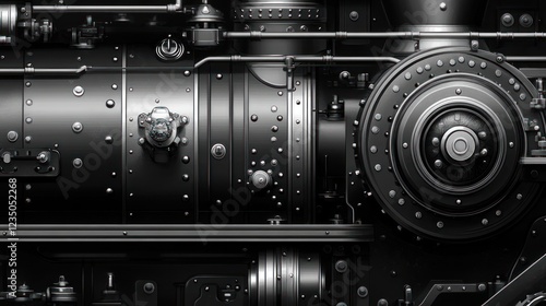 Fototapeta premium Dark Steampunk Engine Close-up, Industrial Background, Mechanical Design