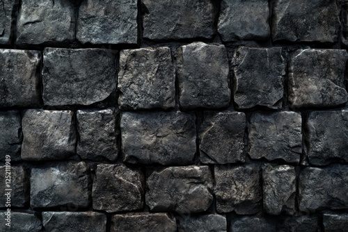 Fototapeta premium Dark stone wall pattern with uneven texture. Artificial Intelligence