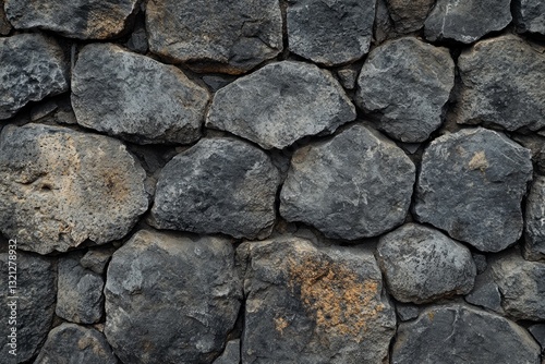 © Marharyta, Obraz premium Dark stone wall pattern with uneven texture. Artificial Intelligence