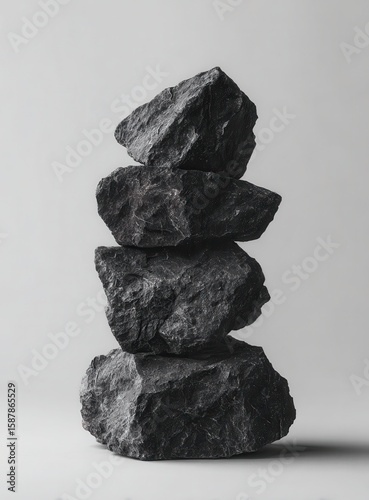 © a muh sakaria, Fototapeta premium Dark stones stacked vertically