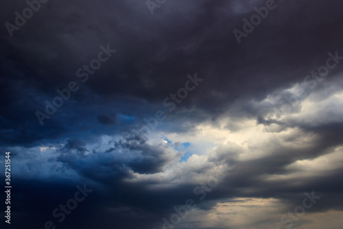 Fototapeta premium Dark storm clouds in sky before thunderstorm and rain. Dramatic sky background