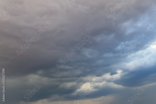 Fototapeta premium Dark storm clouds in sky before thunderstorm and rain. Dramatic sky background