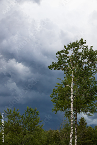 © Martina, Obraz premium Dark storm clouds in the sky and silhouette of trees