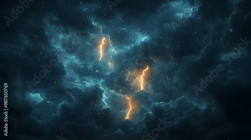 © embun, Fototapeta premium Dark Storm Clouds with Lightning Illustration