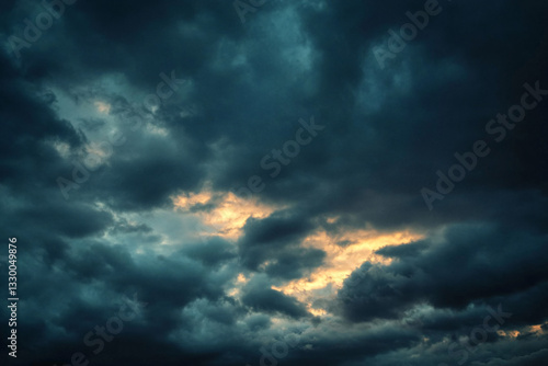Fototapeta premium Dark stormy clouds with hints of light breaking through creating a dramatic sky