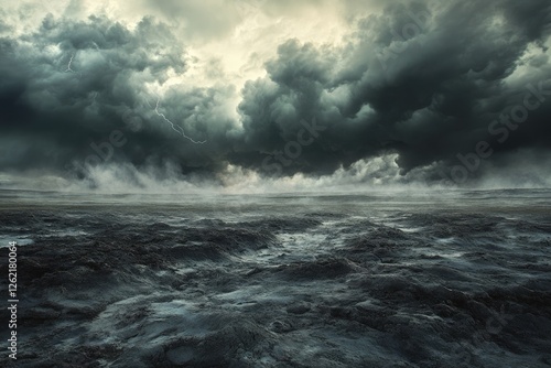 Obraz premium Dark, stormy landscape with ominous clouds and lightning over a desolate,...