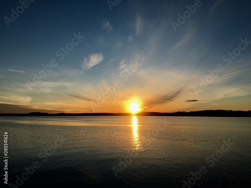 © BusyPic, Naklejka premium Dark Sunset at the lake in summer