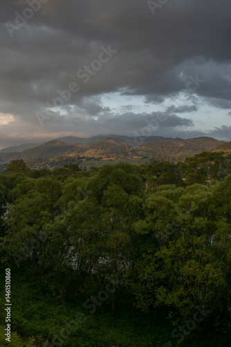 © dnbr, Obraz premium Dark sunset sky over mountains