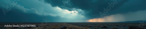 © Chanchai, Obraz premium Dark, swirling clouds over a desolate landscape, stormy, clouds, gloom
