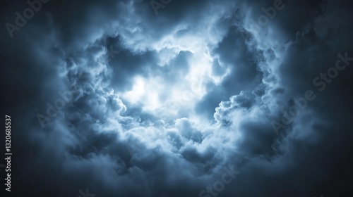 Fototapeta premium Dark swirling storm clouds with glowing light breaking through. Weather and...