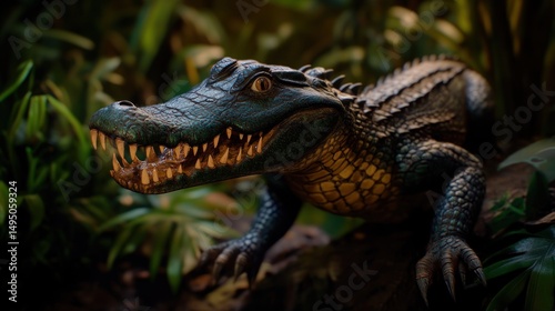© Abdhul, Fototapeta premium Dark teal alligator in jungle setting