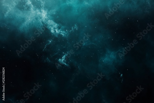 © rioyoungguns, Fototapeta premium Dark teal nebula with scattered stars and cosmic dust.
