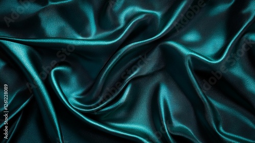 Fototapeta premium Dark Teal Silk Fabric Draped Softly Luxurious Texture