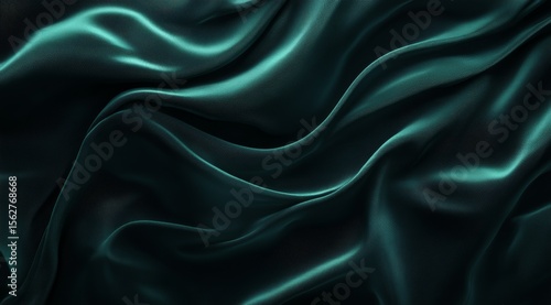 © Choli, Obraz premium Dark teal silk fabric with elegant waves and folds.