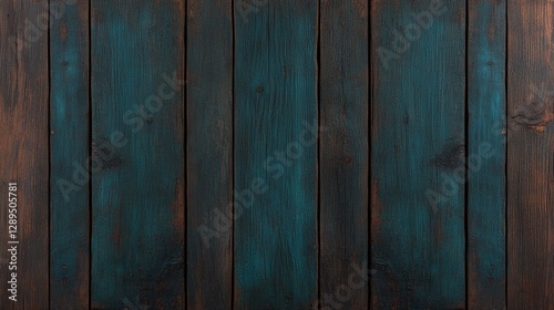 Naklejka premium Dark teal wood planks, deep rustic finish, moody minimalistic background,...