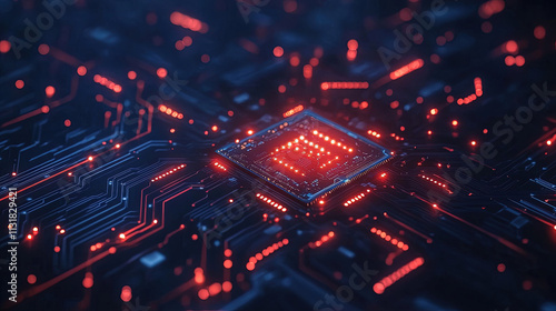 © Camalia MN, Obraz premium Dark technology background with circuit board lines
