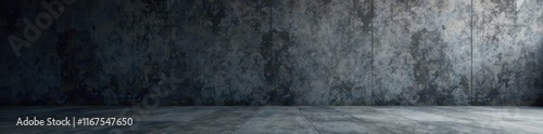 Fototapeta premium Dark, textured concrete wall and floor seamless backdrop, shadow, solid