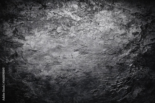 Fototapeta premium Dark, textured grayscale image resembling rough, aged stone or rock; uneven...