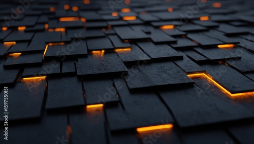 Obraz premium Dark, textured, rectangular panels, lit with warm orange lines