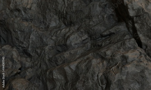 © omkuhh, Fototapeta premium Dark, textured rocky mountain landscape. Intricate, layered geological formations