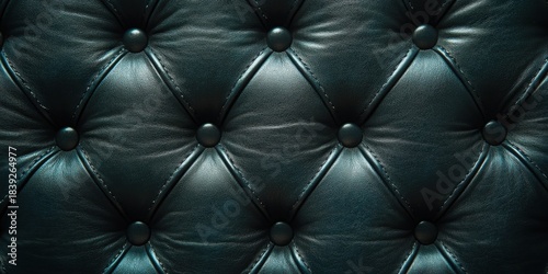 Fototapeta premium Dark, tufted leather surface with button accents and diamond patterned stitching