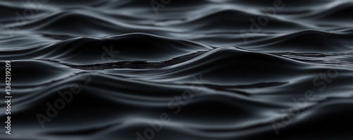 © Sasiwan, Obraz premium Dark, undulating water waves create a tranquil and mysterious atmosphere, reflecting light subtly across their surface.