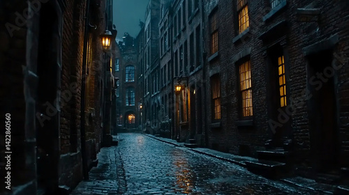 © ADIFERI, Fototapeta premium Dark urban alleyway