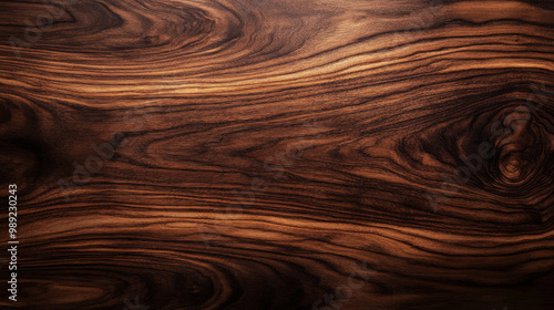 Obraz premium Dark walnut wooden background, smooth and polished surface with rich textures, elegant and sophisticated,