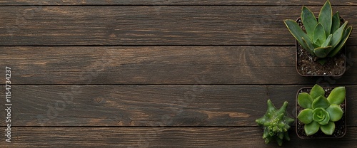 Fototapeta premium Dark wood background with succulents.