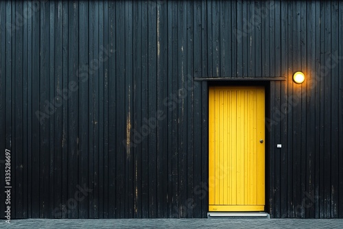 © Alchemist, Fototapeta premium Dark wood exterior with vibrant yellow door