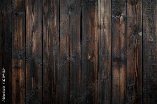 © Yusnira, Obraz premium Dark wood planks background texture, rustic, vertical, studio