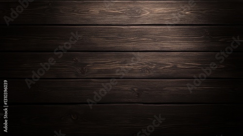 Naklejka premium Dark wood planks forming a horizontal background with subtle lighting and wood grain texture