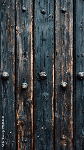 © Enggal Pitoyo, Naklejka premium Dark wood planks with metal studs.