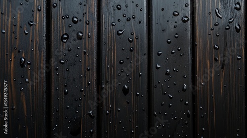 © thenort, Obraz premium Dark wood planks with water droplets.