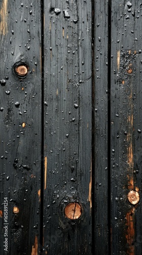 © Cingcang Gulai, Fototapeta premium Dark Wood Planks with Water Droplets Texture Background