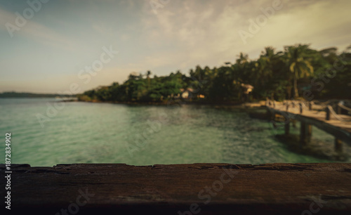 © avtk, Obraz premium dark wood table on the beach