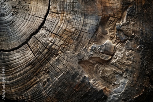 Fototapeta premium Dark wood texture abstract wavy pattern with lines and cracks