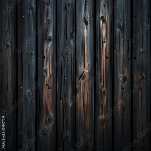Fototapeta premium Dark wooden planks with knots and subtle light reflections