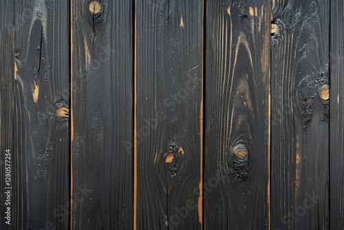 © Larysa, Fototapeta premium Dark wooden planks with knots texture. AI image