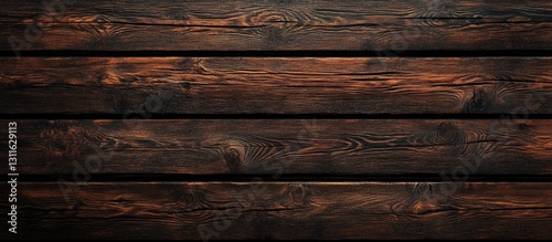 © Rasim, Naklejka premium Dark wooden texture background with horizontal planks featuring rich brown tones and deep grain patterns for a rustic template design.