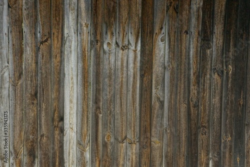 Naklejka premium dark wooden texture of gray and brown boards in the wall of the fence on the...