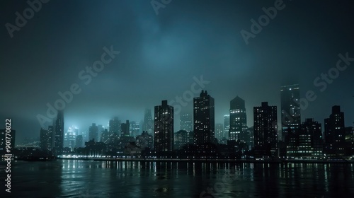 © Creations Photo , Obraz premium Darkened city skyline during a power outage at night.