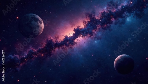 © เดือน สุขทั่วญาติ, Obraz premium Darkened galaxy background with twinkling stars and planets, galaxy, astronomy