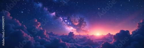 Naklejka premium Darkened heavens with scattered stars and a hint of aurora, nebula,...